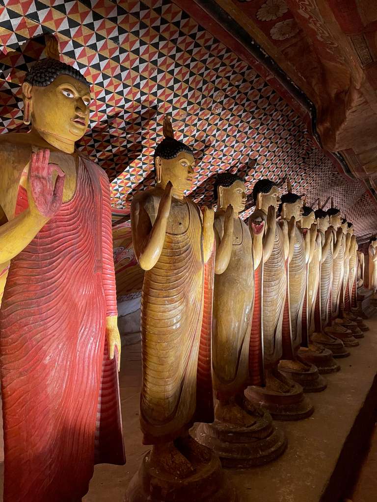 Das absolute Highlight Dambullas sind die berühmten Felsentempel. Die Tempel, die auch zum UNESCO-Weltkulturerbe gehören, sind die größten und am besten erhaltenen ihrer Art auf Sri Lanka. In fünf beeindruckenden Höhlen gibt es über 150 Buddha-Statuen, kunstvolle Wandmalereien und eine ganz besondere Atmosphäre zu erleben. Die bunten Fresken erzählen Geschichten aus dem Leben Buddhas und spiegeln die jahrtausendealte Geschichte des Landes wider. Der Tempel darf übrigens nur barfuß betreten werden, egal bei welchem Wetter und wie üblich sollten Schultern und Knie wie üblich ebenfalls verdeckt sein. Ganz in der Nähe der Felsentempel liegt auch das buddhistische Museum Dambullas - architektonisch speziell - aber irgendwie durch die große goldene Buddha-Statue und die gegenüberliegende Stupa auch beeindruckend.